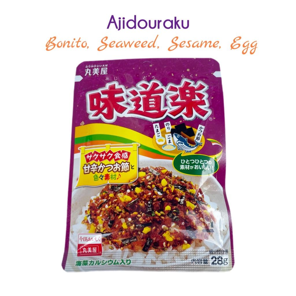 Made with nori seaweed flakes, powdered egg granules, whole sesame seeds, bonito fish flakes and other seasonings, this furikake adds incredible amounts of savoury umami flavour to any food it touches. Furikake is a dry Japanese seasoning meant to be sprinkled on top of cooked rice, vegetables, and fish. It typically consists of a mixture of dried fish, sesame seeds, chopped seaweed, sugar, salt, and monosodium glutamate.[2][3] Other flavorful ingredients such as katsuobushi (sometimes indicated on the package as bonito), or okaka (bonito flakes moistened with soy sauce and dried again), freeze-dried salmon particles, shiso, egg, powdered miso, vegetables, etc., are often added to the mix.Furikake is often brightly colored and flaky. It can have a slight fish or seafood flavoring and is sometimes spicy. It can be used in Japanese cooking for pickling foods and for rice balls (onigiri). Since 2003, furikake has increasingly gained acceptance in the US (particularly in Hawaii and the West Coast) as a seasoning for baked or fried fish, raw fish salads and snack foods such as furikake party mix.
